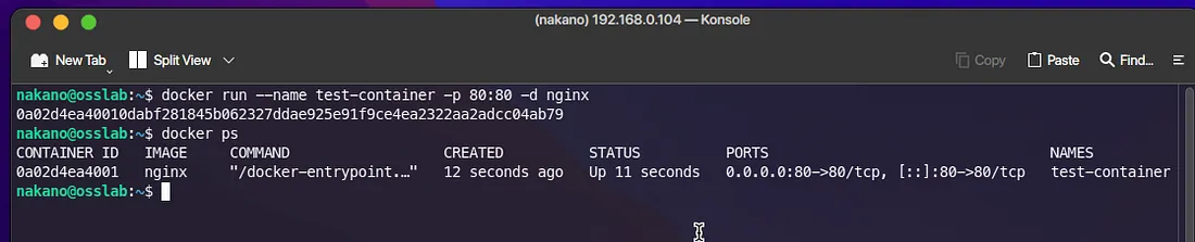 docker run --name test-container -p 80:80 -d nginx