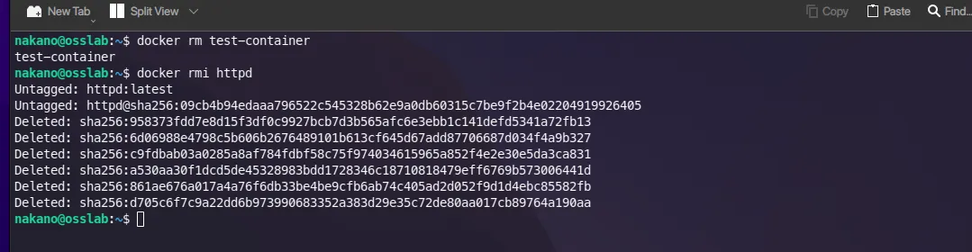 docker rm test-container