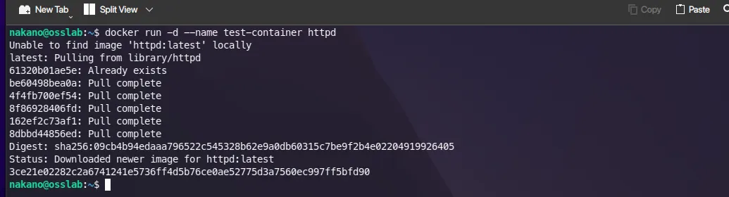 docker run -d --name test-container httpd