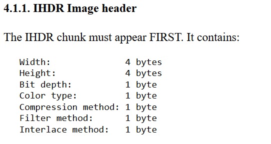 Untuk memperbaiki file PNG ini, kita perlu memahami struktur file PNG, khususnya bagian IHDR (Image Header).